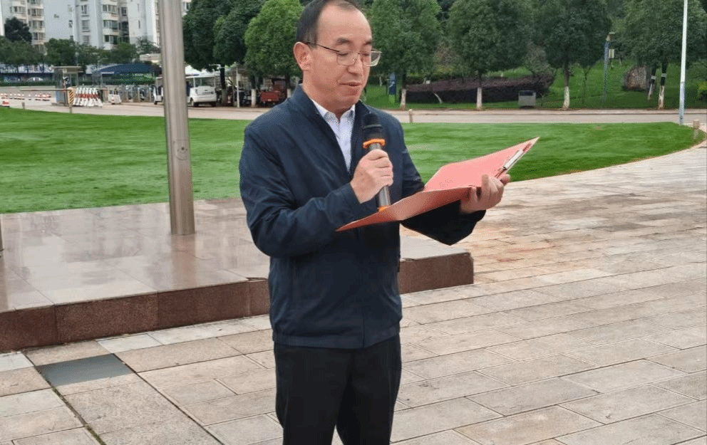 学院党委书记赵磊峰以《脚下有泥,心中有光:让青春为祖国添绿意》为主题进行国旗下讲话。他回顾了新中国走过的辉煌历程,强调了爱国主义是中华民族的民族心、民族魂,点明园林园艺专业在生态文明建设中的重要作用,呼吁师生深耕专业、知行合一。并对学生提出坚定信念、夯实基础、勇于创新、服务社会四点期望,勉励学院全体师生牢记时代使命与责任,聚焦“国之大者”、“省之要事”,找准发力点,笃定前行,以实际行动展现云农园林园艺人的时代使命和责任担当,为国旗增辉添彩。