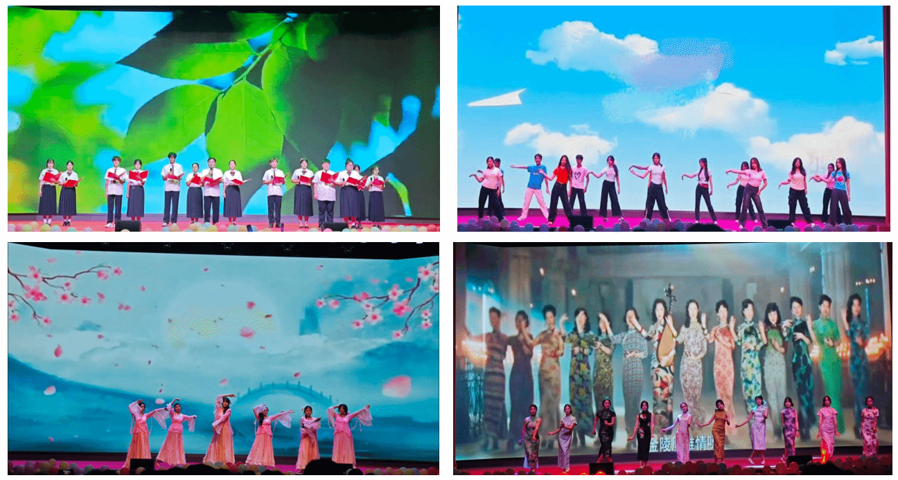 本场晚会分为“新苗初绽艺林里,青春逐梦启新程”“红韵润枝承初心,薪火相传映山河”“繁花满径向山海,逐光而行赴未来”三个篇章,节目内容丰富多彩、形式多样,涵盖了歌舞、民乐、舞台剧、朗诵等,为观众呈现了一场兼具青春活力与文化底蕴的视听盛宴。晚会还设置了激动人心的抽奖环节,同学们踊跃参与,现场欢声笑语不断。