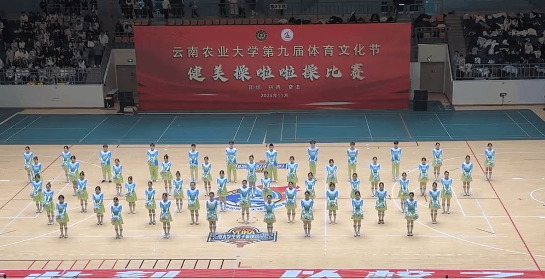 云南农业大学第九届体育文化节校园健美操啦啦操比赛在学校体育馆圆满落幕。园林园艺学院50人代表队凭借活力满满的表演斩获全校二等奖。