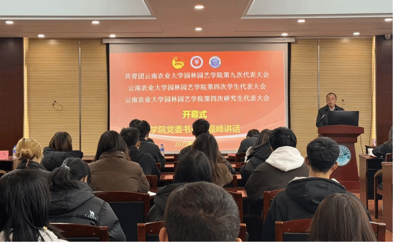 为深入学习贯彻习近平新时代中国特色社会主义思想和党的二十大精神,进一步加强园林园艺学院共青团和学生组织建设,团结带领广大团员青年学子在学院高质量发展中勇担使命、奋发有为,2025年12月17日,共青团云南农业大学园林园艺学院第九次代表大会、云南农业大学园林园艺学院第四次学生(研究生)代表大会在滇台中心一栋三楼1310隆重召开。校团委副书记杨勇、学院党委书记赵磊峰、学院院长杨正安、学院党群办、团委全体老师、各代表团代表出席会议。