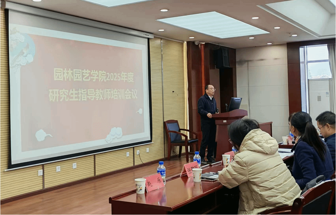 为进一步规范研究生教育管理、提升导师育人质量,2025年12月18日早上园林园艺学院在云南农业大学滇台中心三楼1310会议室,召开在职研究生导师培训会议,学院领导、全体导师、硕士点秘书、研究生班主任及办公室有关人员参加了会议。